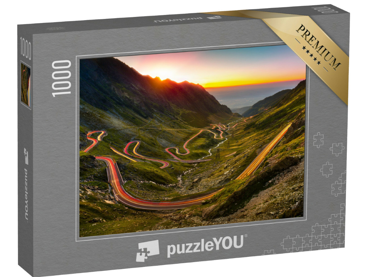 Puzzel „De Transfagarasanpas bij zonsondergang in Roemenië“