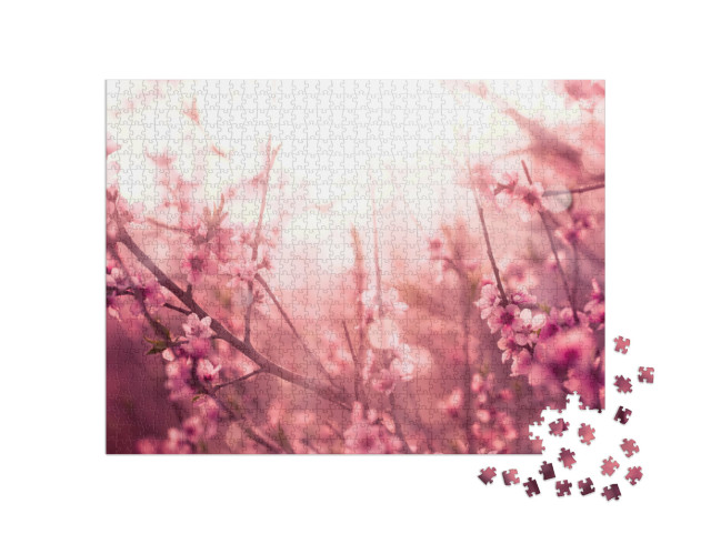 Puzzel „Delicaat lentelicht in bloeiende kersenboomtakken“