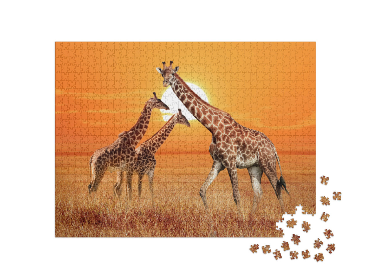 Puzzel „Giraffe met haar twee jongen, Serengeti Nationaal Park, Tanzania“