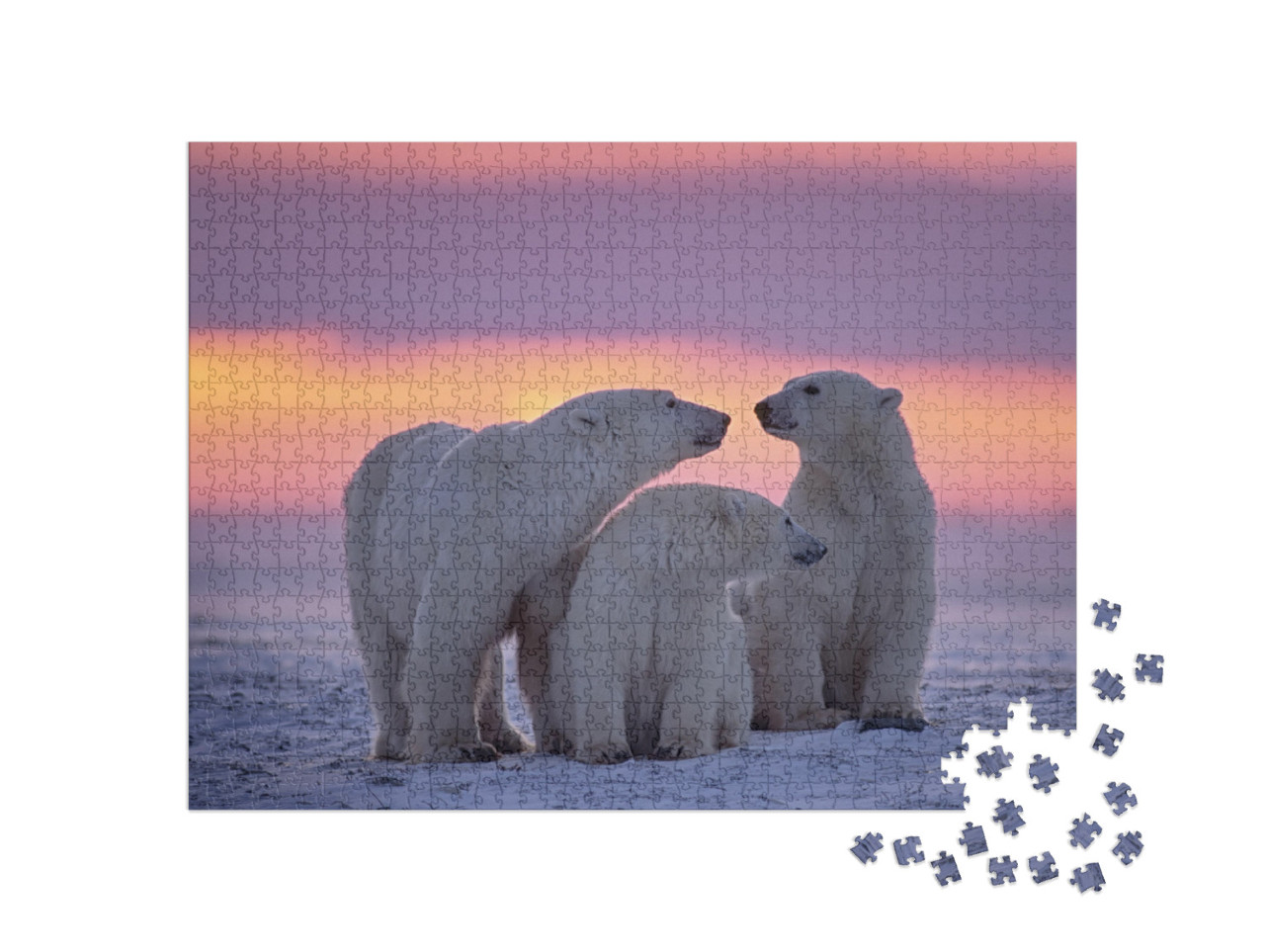 Puzzel „IJsberenfamilie bij zonsondergang in het Canadese noordpoolgebied“
