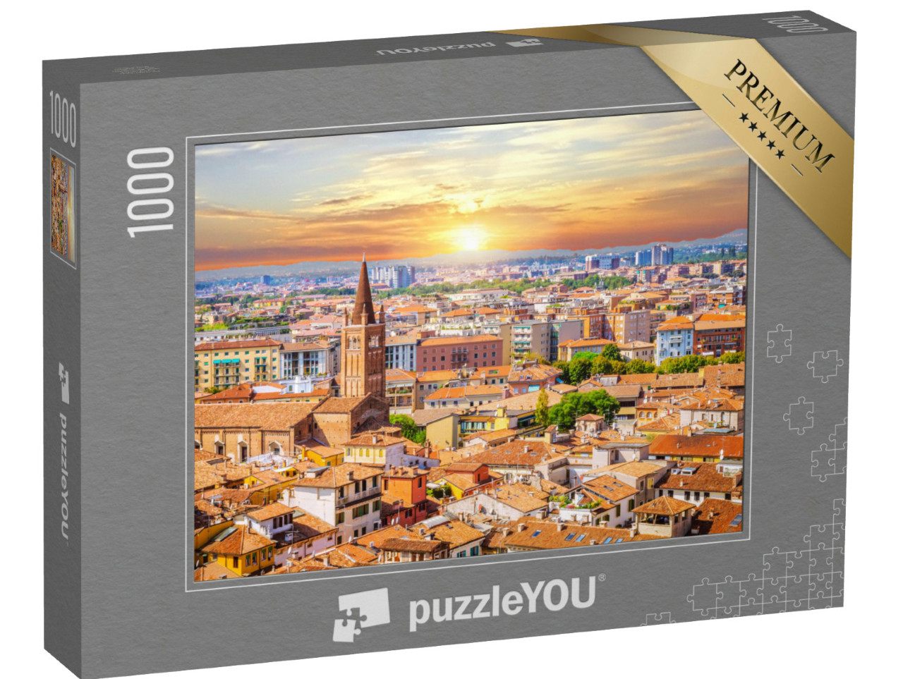 Puzzel „Luchtfoto van Verona bij zonsondergang, Veneto, Italië“