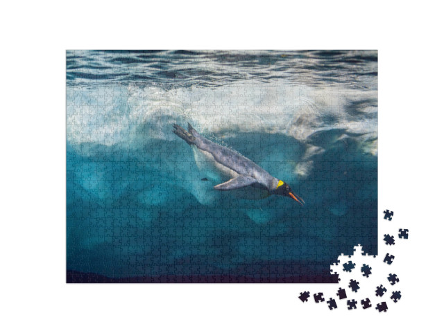 Puzzel „Pinguïn duikt onder het ijs, onderwaterfoto“