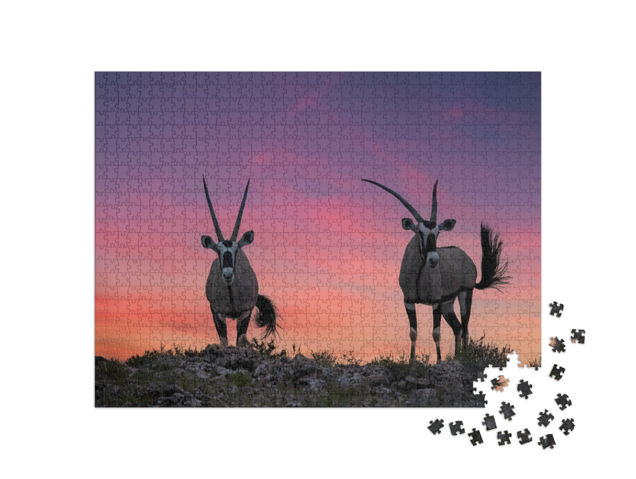 Puzzel „Twee grote antilopen met spectaculaire horens, Kalahari“