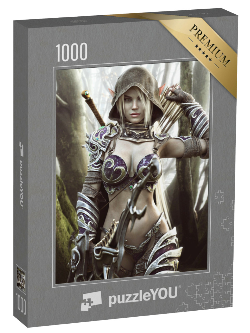 Puzzel „Vrouwelijke donkere elf in fantasiepantser“