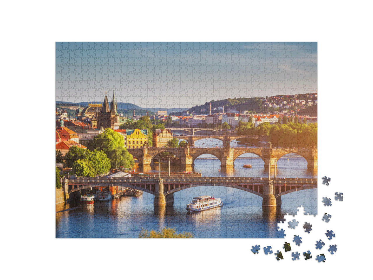 Puzzel „Zonsondergang over de Karelsbrug in Praag, Vltava, Tsjechië“